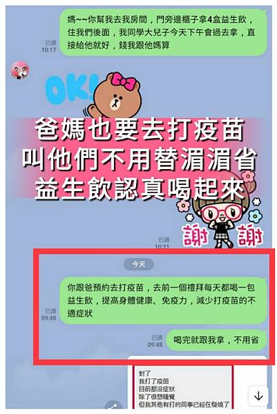 說去接種前有先加強一天2包益生飲